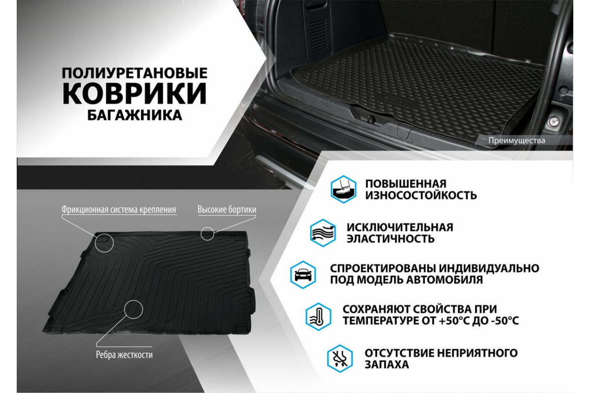 Коврик в багажник автомобиля Rival для Chevrolet Aveo T200/T250 седан 2003-2012/Nexia седан 2020-н.в./Ravon Nexia R3 седан 2016-н.в., полиуретан, 11301005