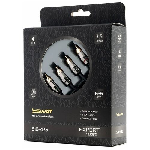 SWAT SIX-435 межблочный кабель 4RCA-4RCA/ 3.5 метра / витая пара / 3 экрана / медь