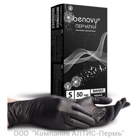 Перчатки одноразовые виниловые BENOVY 50 пар (100 шт. размер S (малый), черные
