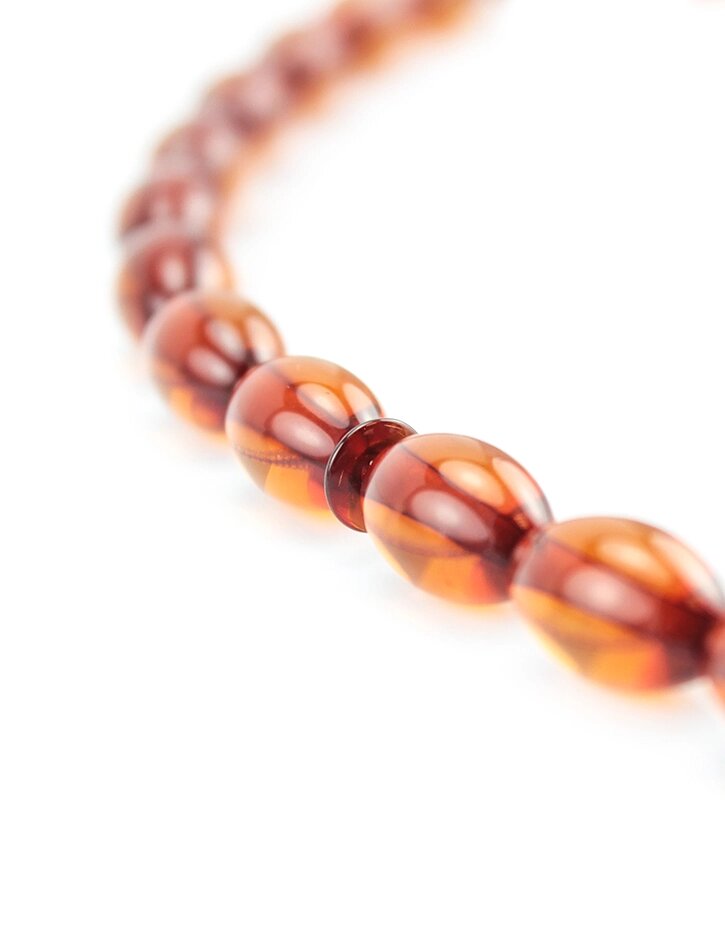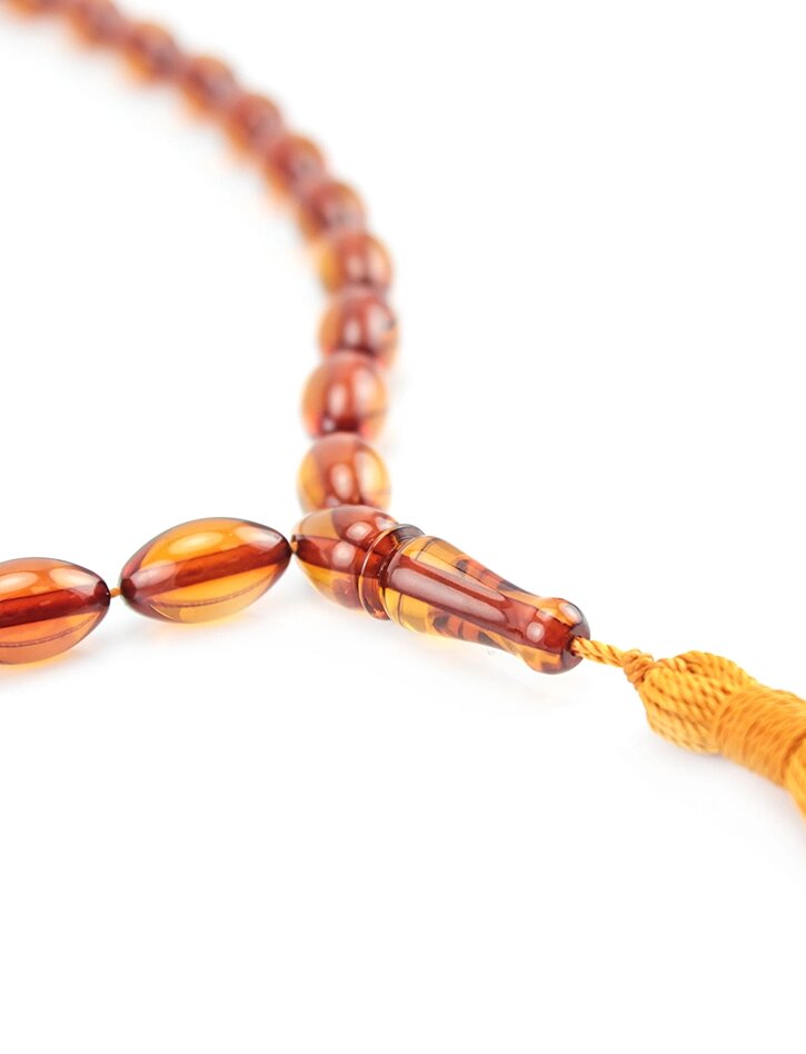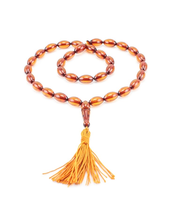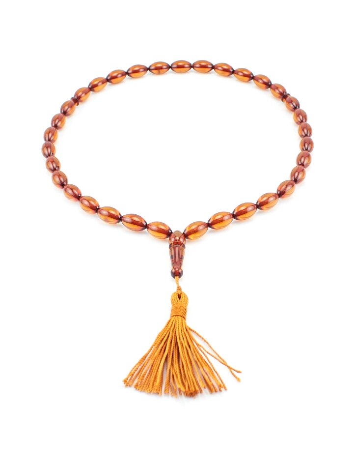 Чётки из натурального янтаря чайного цвета (на 33 бусины-оливки)
