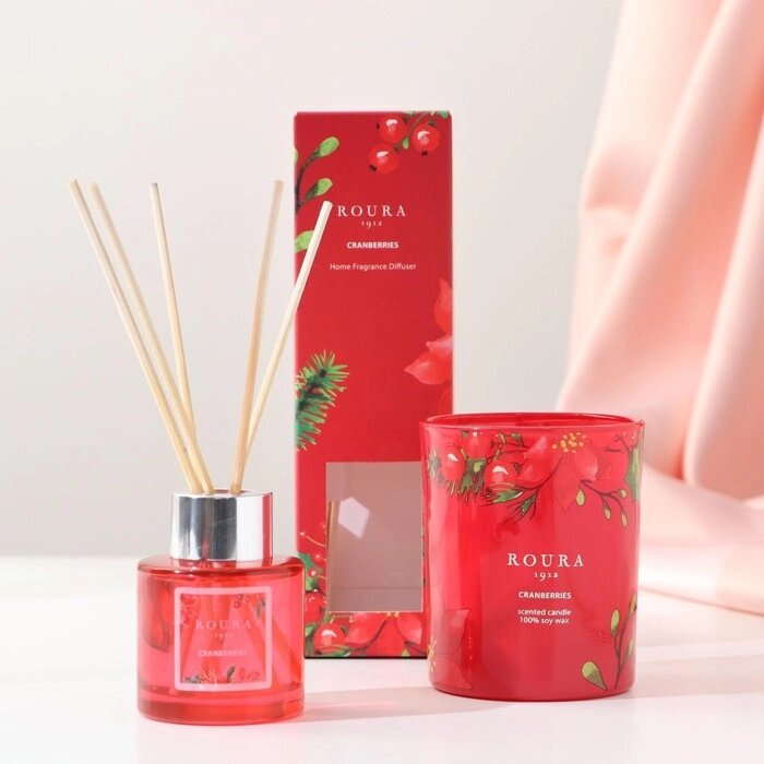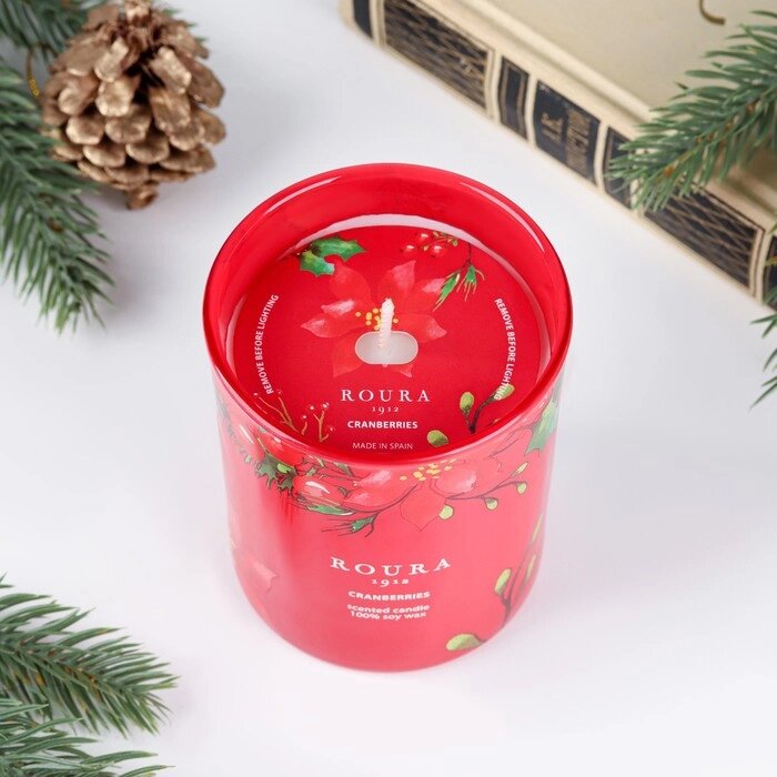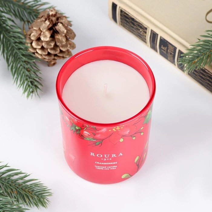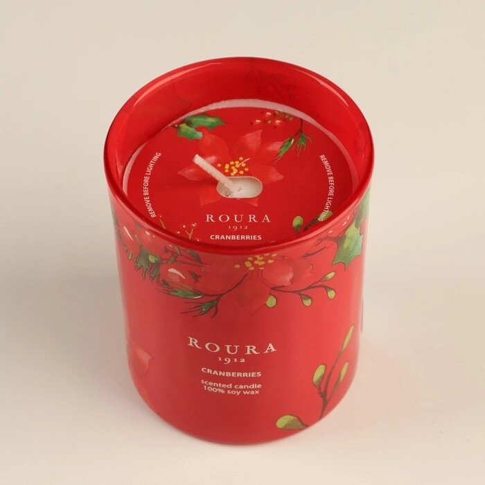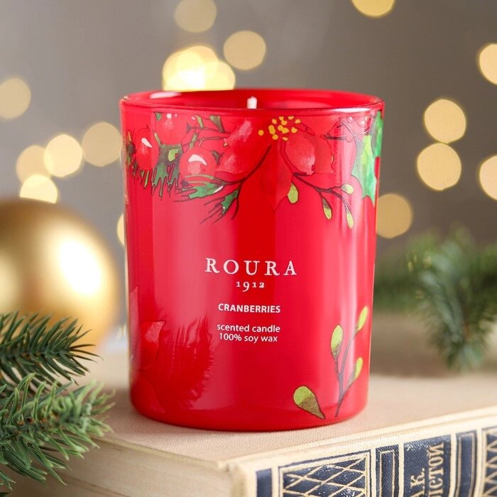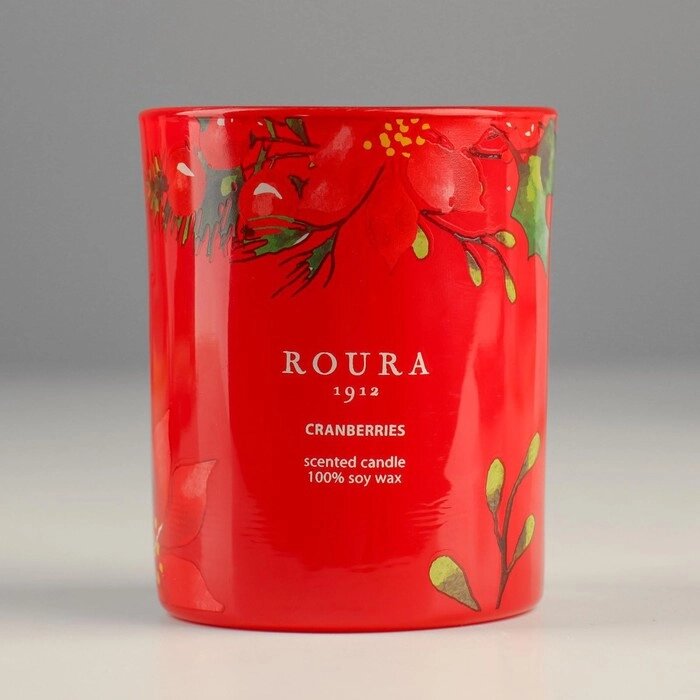 Натуральная ароматическая свеча в стакане ROURA "Клюква", 8,5х7 см, 140 гр, соевый воск