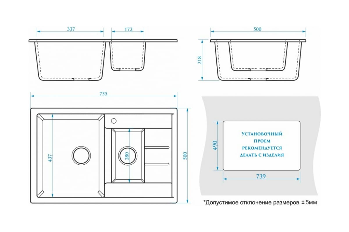 Кухонная мойка GLANZ цвет: чёрный J-210-32