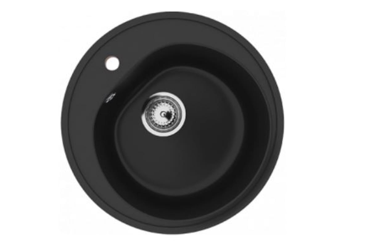 Кухонная мойка ULGRAN U-101 цвет: ультра-черный U-101-344 с отверстием под смеситель и переливом. Выпуклый бортик по периметру окружности не позволит скатываться каплям воды за пределы мойки.