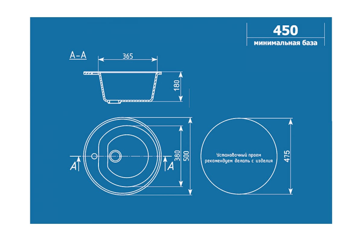 Рекомендованная ширина шкафа, в который устанавливается мойка: не менее 450 мм.