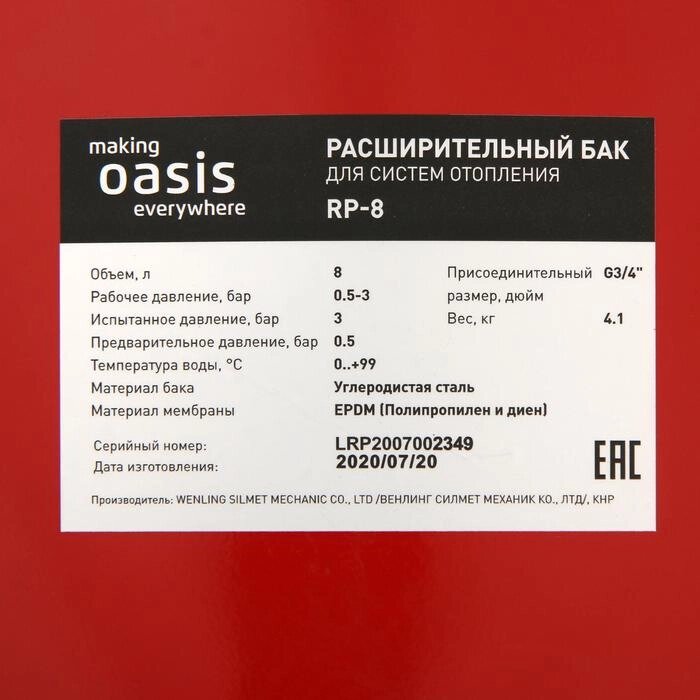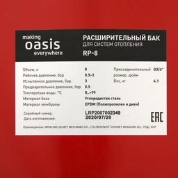 Бак расширительный Oasis RP-8, для систем отопления, плоский, 8 л