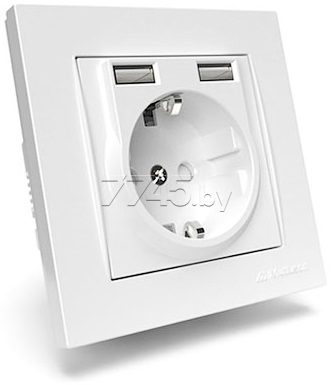 Розетка скрытая с 2 USB-портами и заземлением MUTLUSAN Rita белая (2220 619 0201) уцененный (0357541032)