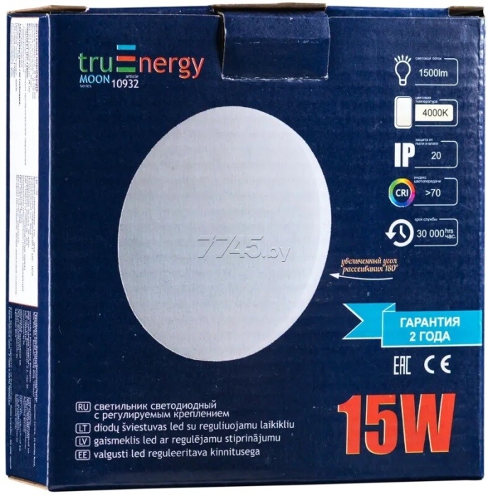 Светильник встраиваемый светодиодный 15 Вт 4000К TRUENERGY Moon (10934) - энергоэффективность этого устройства позволяет использовть его в местах, где ранее использовались светильники с лампами накаливания мощностью до 75 Ватт.