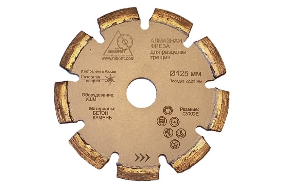 Алмазный круг 125×22.2 мм Ниборит в1048 предназначен для использования с УШМ. Используется для разделки трещин и расширения швов в бетоне, штукатурке, пескоцементных швах и асфальтовых покрытиях. Ширина сегмента 6 мм, что позволяет расшивать трещины разной формы и размеров. Сегменты покрыты кобальтом и вольфрамом, подходят для обработки различных материалов.