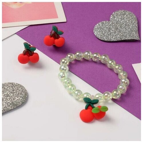 Набор детский 2 предмета: клипсы, браслет, вишенки, цветной