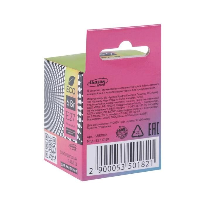Светодиодная лампа для растений Luazon Lighting, 6 Вт, E27, 220В