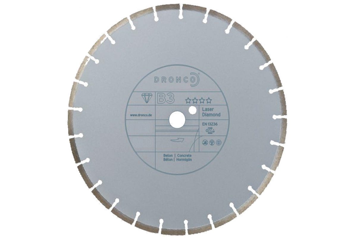 Диск алмазный B3 DRONCO 4350630 предназначен для ручных резчиков и бензорезов. Применяется для сухого/мокрого реза по бетону. Диск обеспечивает качественный ровный рез.