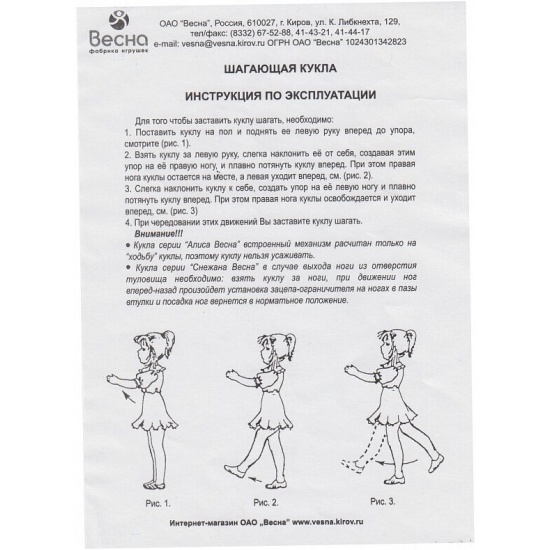 Кукла ВЕСНА В3945/о Снежана кэжуал 83 смРучки и голова выполнены из эластичного, приятного на ощупь винила, а туловище и ноги из пластмассы.Прекрасные прошитые волосы из качественного нейлона, похожие на натуральные, можно завивать, расчёсывать, укладывать в разные причёски, меняя образ куклы.Игровые и дидактические возможности куклы: при нажатии на звуковое устройство, вставленное в спинку, кукла произносит фразы.Снежана оснащена механизмом движения, её можно водить за руку. Инструкция прилагается к кукле. Во избежание поломки механизма движения куклы её не рекомендуется усаживать. Рост куклы 83 см. Кукла Снежана озвучена. Глаза вставные закрывающиеся. Тело куклы пропорционально. Кукла произносит следующие фразы:Теперь ты моя подруга.-Ты не забыла сегодня мы идем на праздник.Нам нужно быть красивыми.Сделай мне прическу!Получилось очень красиво!Теперь себе.Не забудь про маникюр.А нарядное платье?Мы сегодня самые красивые!