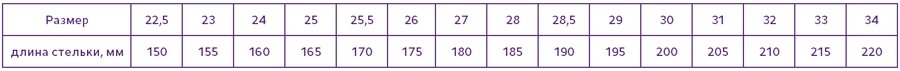 • Размер обуви 25, 26, 27, 28, 29, 30, 31, 32, 33, 34