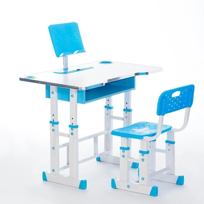 Растущая парта со стулом S08, голубая, ростовая группа №3-4
