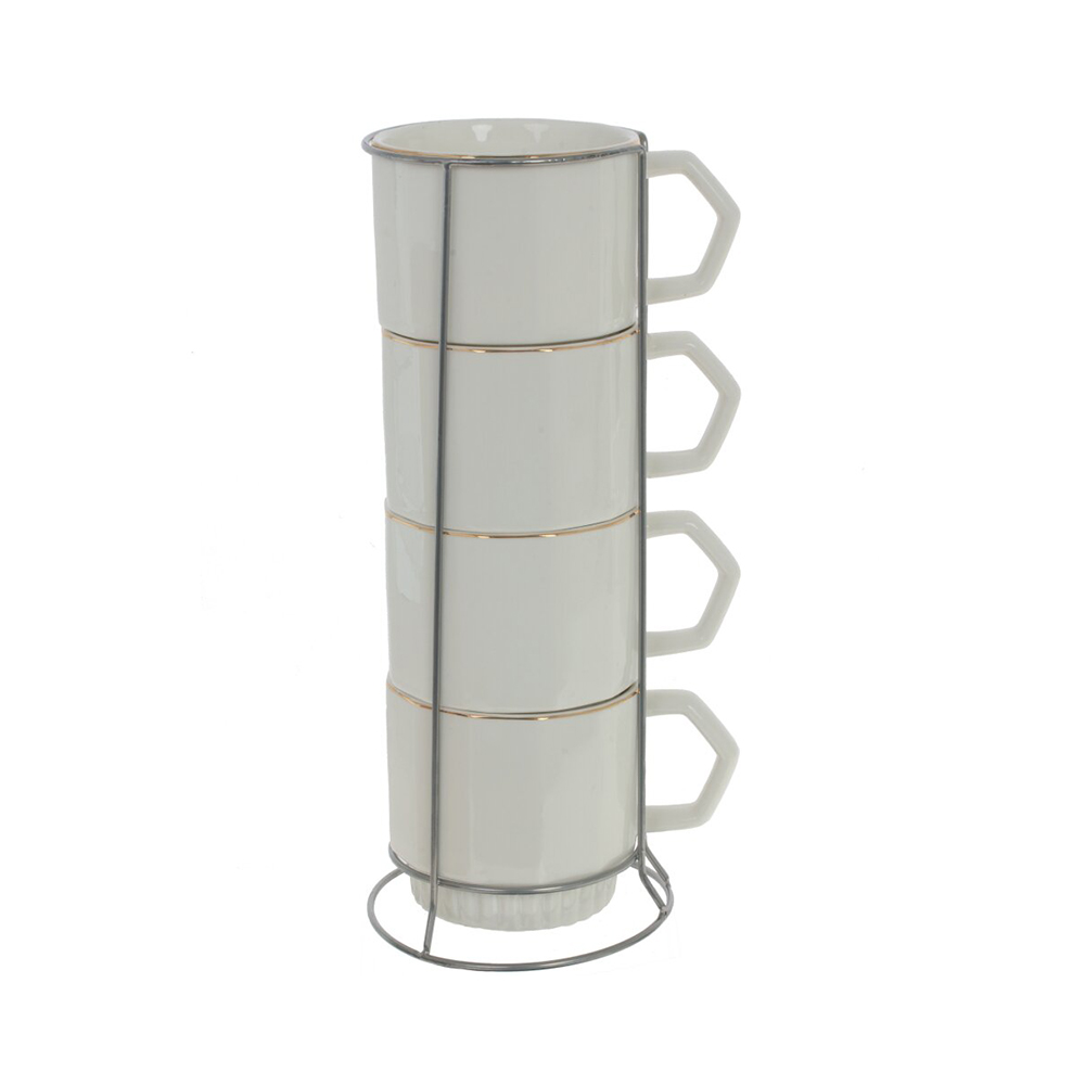Посуда фарфоровая 758995 Набор из 4-х чашек на подставке 13 х 10 х 26 см Белый