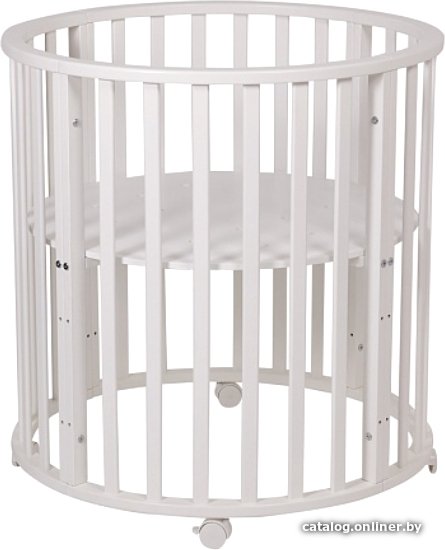 - Варианты трансформации круглая колыбелька, кресло, пеленальный столик, овальная кроватка, манеж, приставная кроватка, диванчик, стол
