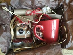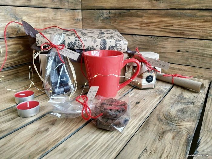 - Содержание набора Состав подарка: • Кружка керамическая• Шоколадное домашнее печенье • Шоколадные ложки• Смесь для приготовления горячего шоколада с зефирками в банке • Рецепт• Декор• Крафткоробка, наполнитель, шнур.