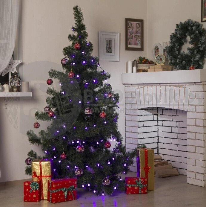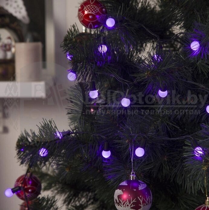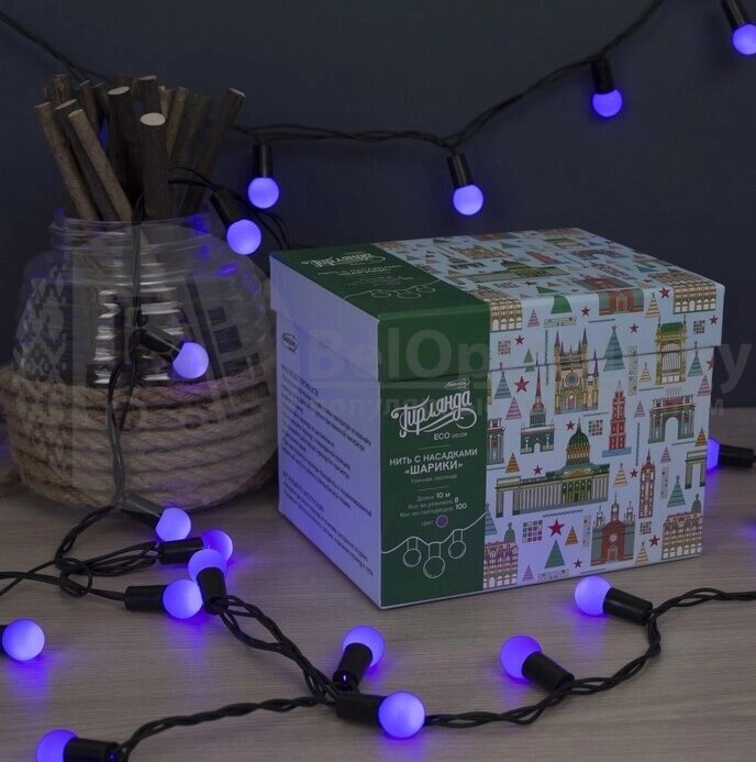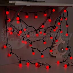 Уличная гирлянда Нить Шарики 1.5 см, IP44, тёмная нить, 100 LED, 8 режимов, 220 В, 10 метров Зеленое свечение
