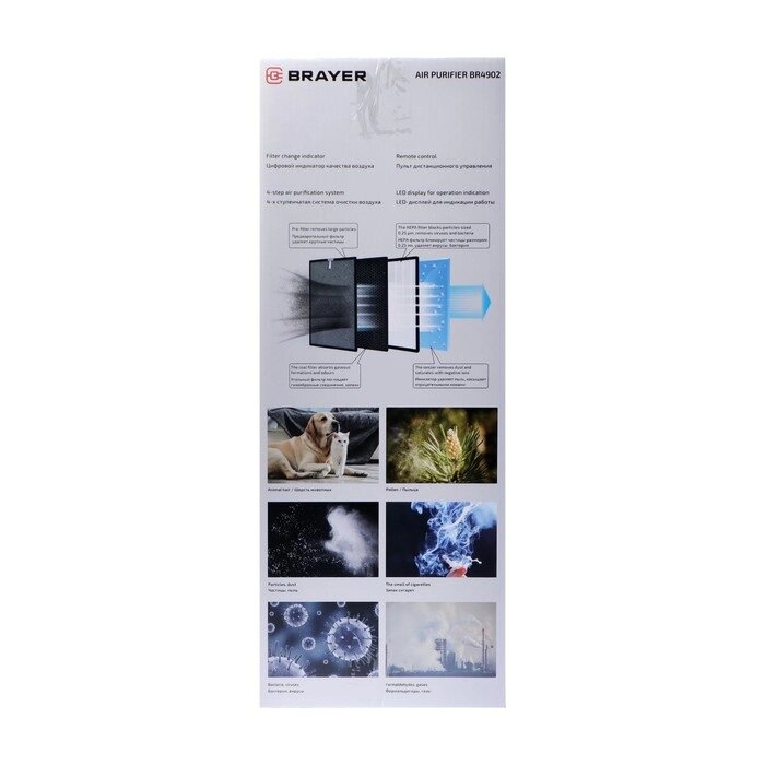 Очиститель воздуха BRAYER 4902BR, 60 Вт, 3 режима, до 38 м2, розовый