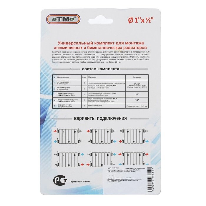 Комплект для подключения радиатора OTMO, 1 х 1/2'без кронштейнов, в блистере