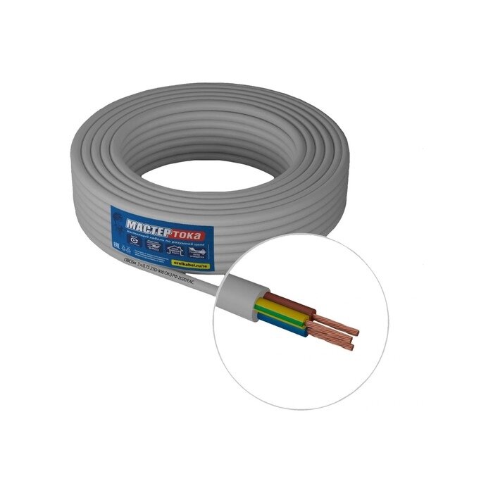 Провод 'Мастер Тока' ПВСбм, сечение 3х0.75 мм2, 10 м, белый
