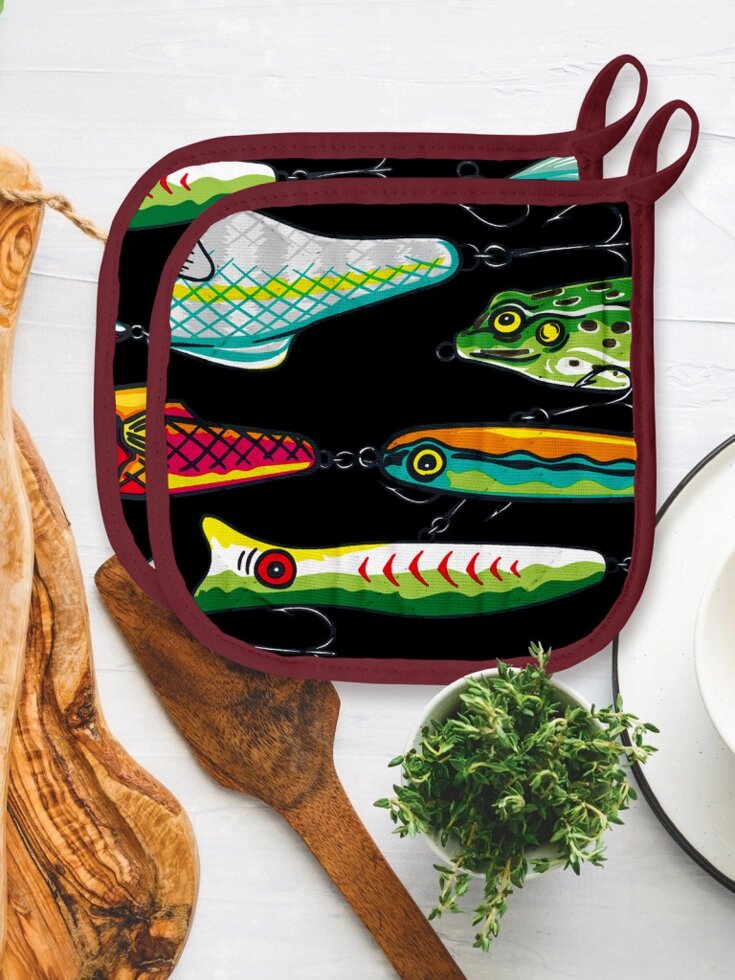 Комплект кухонный рогожка (2 прихватки) Рыбалка