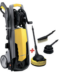 Мощный электрический однофазный двигатель мощностью 2500 Вт вместе с насосом создают давление 160 Bar. Максимальная производительность мойки составляет 510 л/ч. Мойка имеет современный дизайн, функцию автоматической остановки двигателя, возможность хранения и транспортировки аксессуаров на своем корпусе, а также эргономичную рукоятку. В комплект поставки АВД Lavor Predator 160 входят: пистолет, шланг высокого давления длиной 8 метров, трубка для пистолета, сопло, грязевая фреза, пенное сопло, а также вращающаяся щетка, щетка для мойки авто, щетка для мойки плитки. Дополнительно в комплекте поставки присутствует адаптер, через который вы можете подключить входной шланг с водой к минимойке.