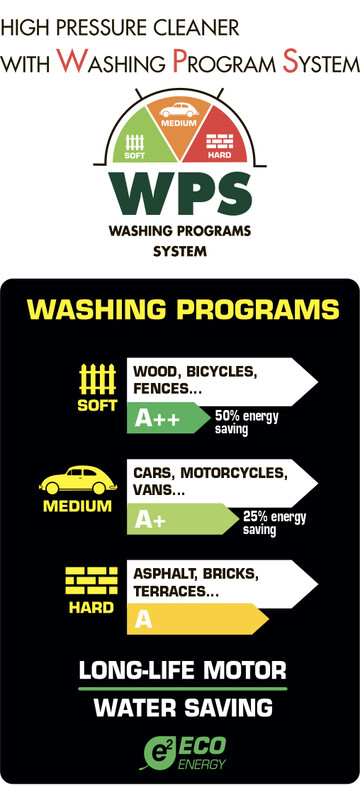 В мойке Lavor NJ Plus 145 WPS осуществляется работа по 3 основным программам, выбирая которые вы получаете оптимальный напор: