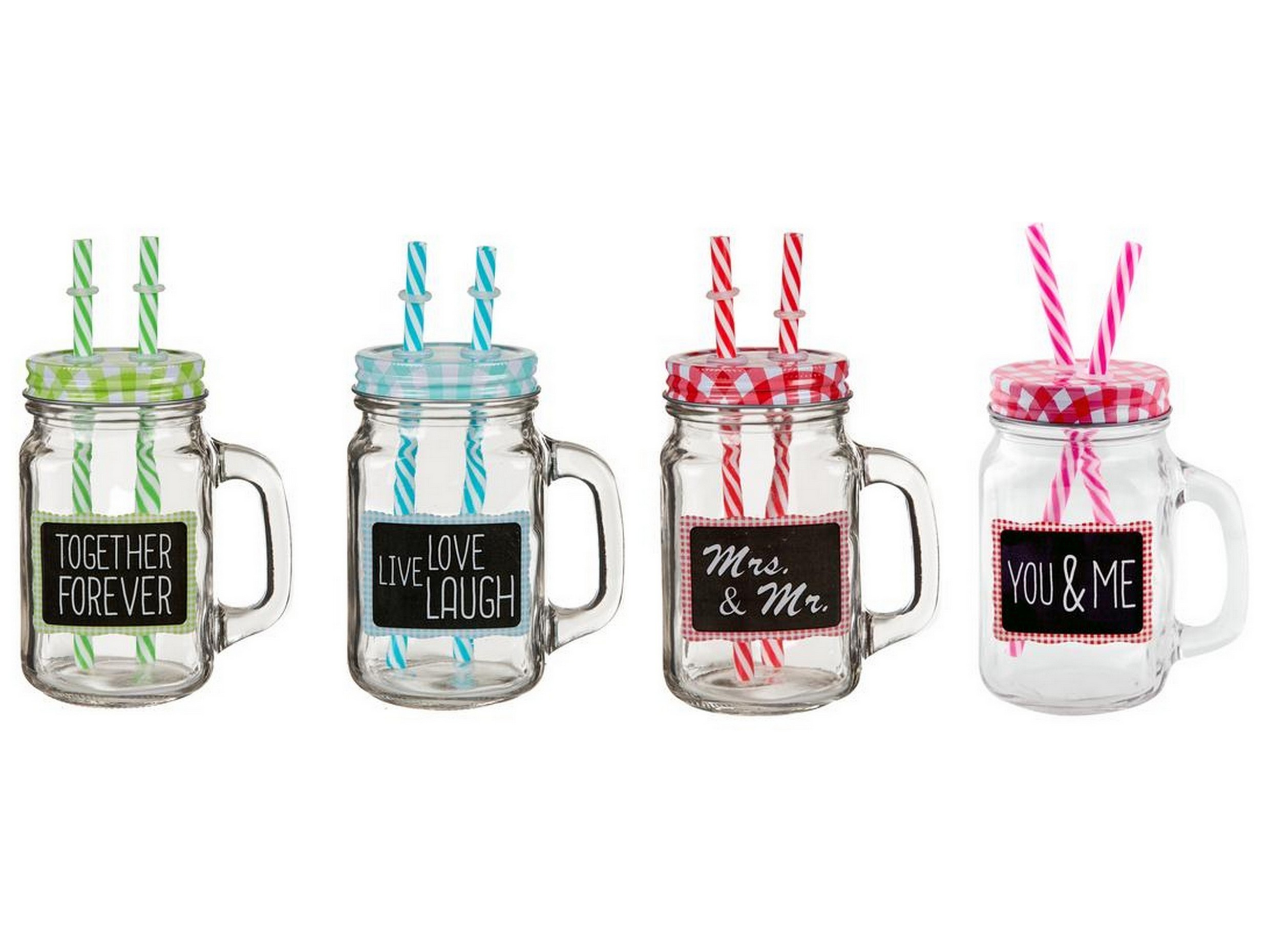 КРУЖКА-БАНКА стеклянная с крышкой и 2-мя соломинками 450 мл (арт. 350690) 89388