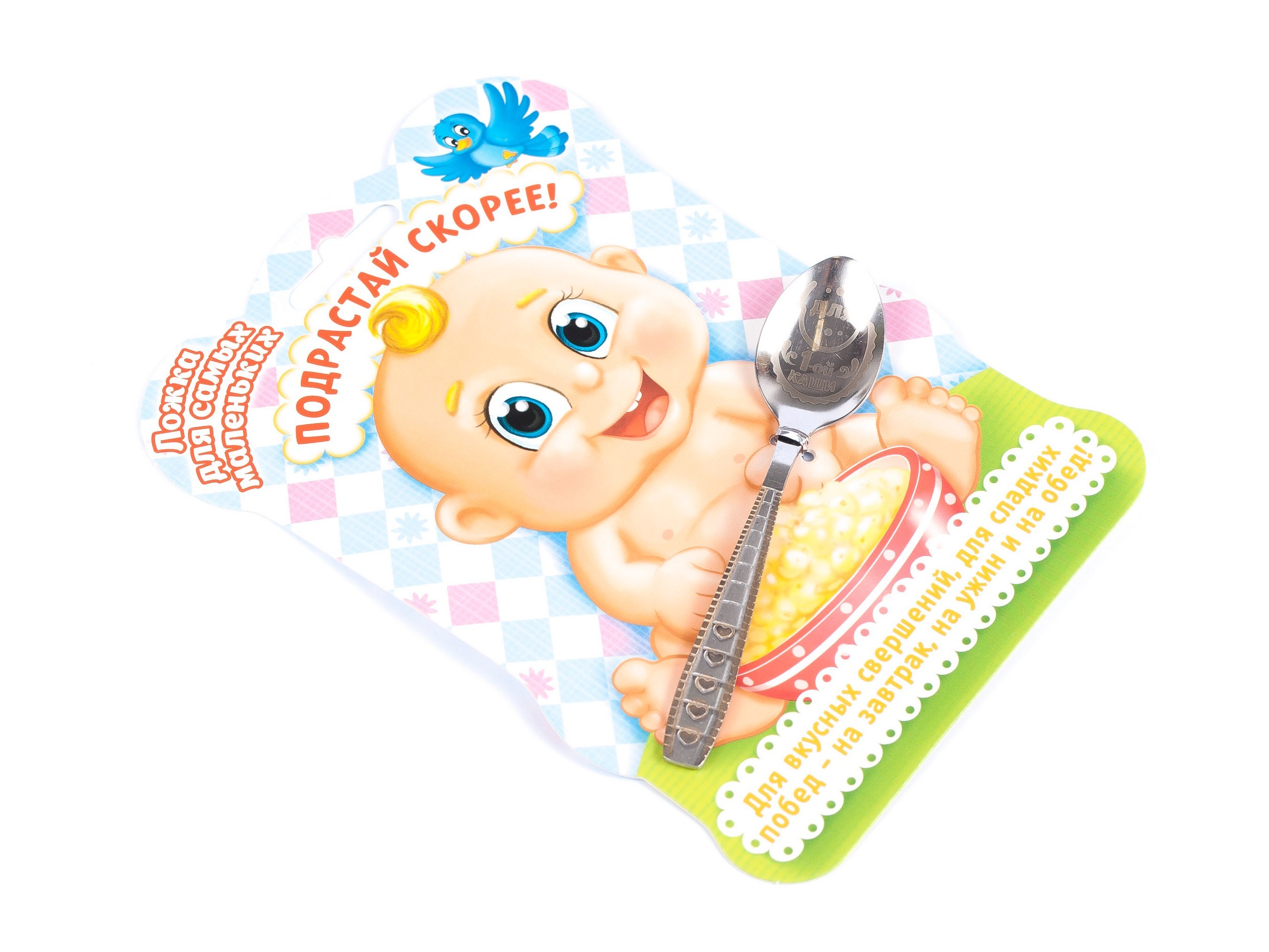 ЛОЖКА ДЕТСКАЯ металлическая на открытке “Для первой каши” 11 см (арт. 10903160, код 638303) 76562