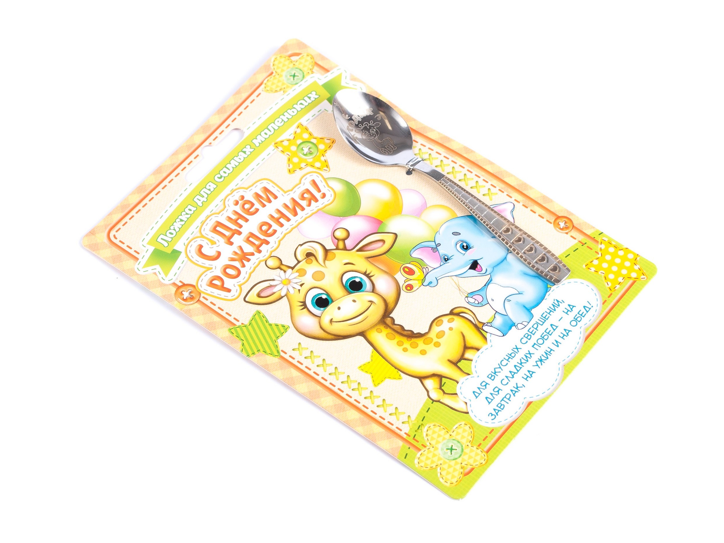 ЛОЖКА ДЕТСКАЯ металлическая на открытке “1 годик” 11 см (арт. 10903163, код 639508)