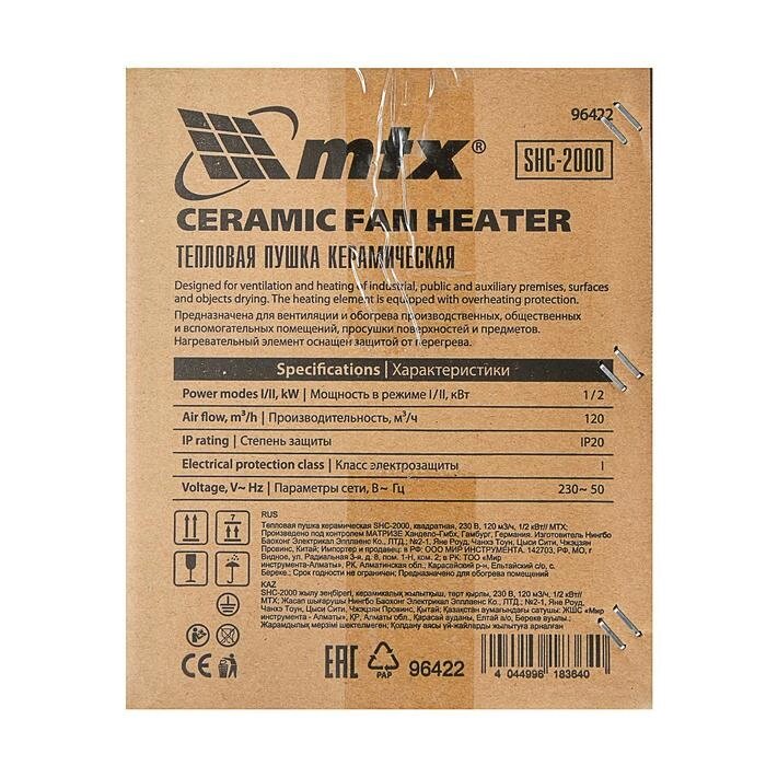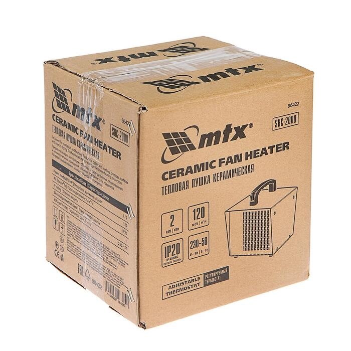 Тепловая пушка MTX SHC-2000, электрическая, 220 В, 1000/2000 Вт, 120 м3/ч, керамика