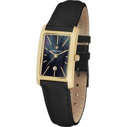 Часы серии Vesta в корпусе прямоугольной формы подчеркивают изящность запястья и точно понравятся тем, кто предпочитает классический стиль или одежду в стиле casual. Часы, минуты, секунды и дата — все это вмещает черный циферблат с деликатным сиянием натурального перламутра. Нержавеющая сталь корпуса украшена PVD-покрытием из желтого золота. Черный ремешок сделан из натуральной кожи с прошивкой.