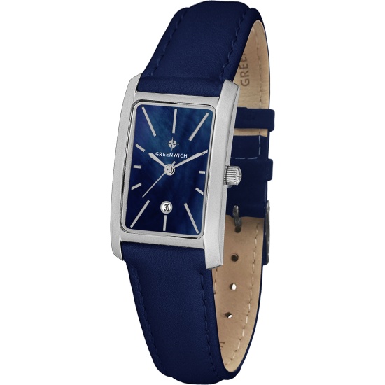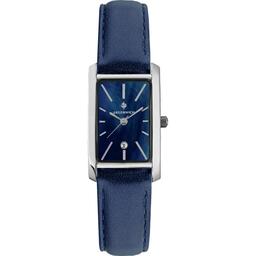 Часы серии Vesta в корпусе прямоугольной формы подчеркивают изящность запястья и точно понравятся тем, кто предпочитает классический стиль или одежду в стиле casual. Часы, минуты, секунды и дата — все это вмещает синий циферблат с деликатным сиянием натурального перламутра. Синий ремешок сделан из натуральной кожи с прошивкой.