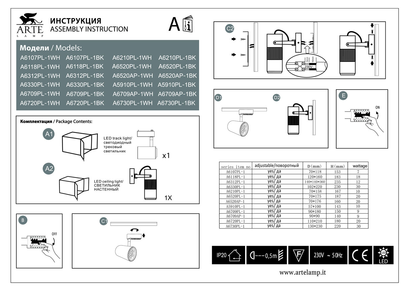 Спот Track Lights A6709AP-1WH от итальянского бренда ArteLamp. Данную модель серии Track Lights 7 отличает оригинальное оформление, которое может стать главным акцентом в оформлении помещения.