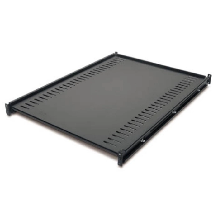 Фиксированная полка выдерживает вес до 114 кг, высота 1U, черная