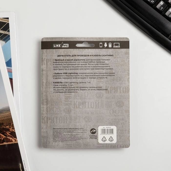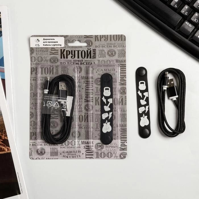 Набор: держатель для провода и кабель USB iPhone «Первый во всем», 12 х 19 см