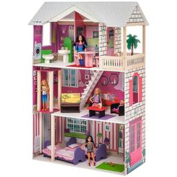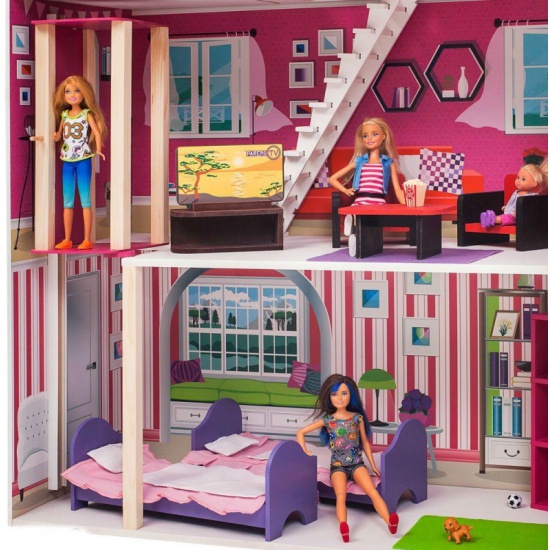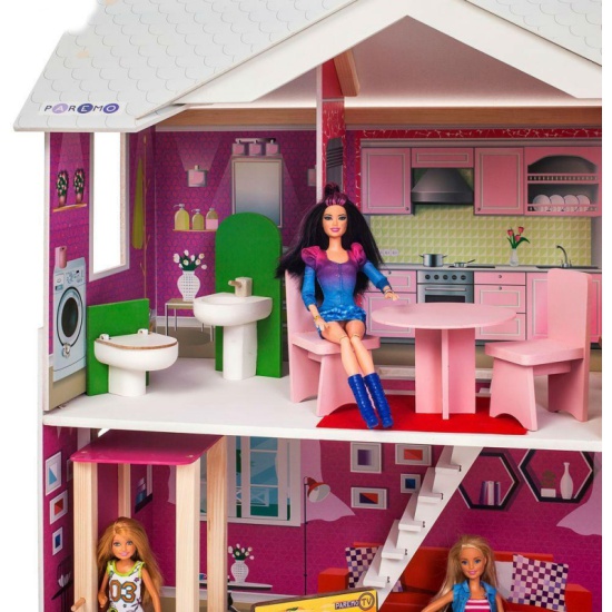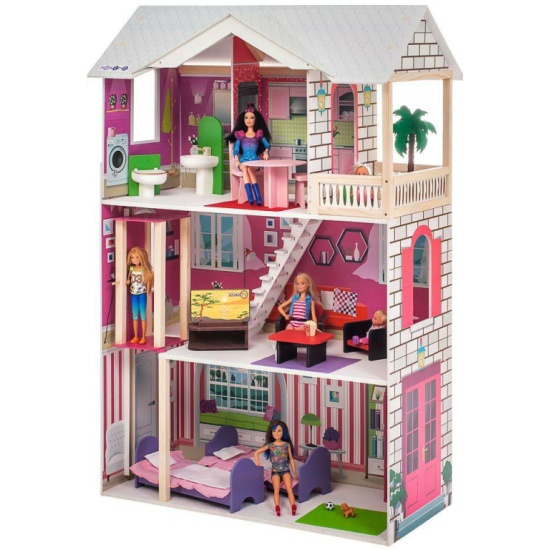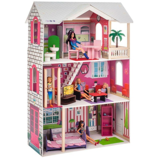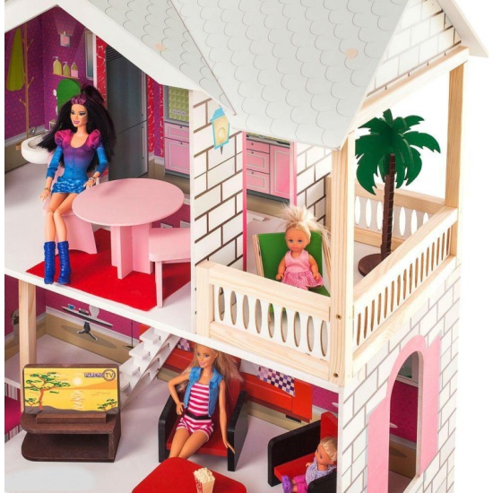 Домик, выполненн в современном стиле, в необычном сочетании серо-белого цвета. Игрушку отличает нежный, пастельный принт по дереву внутри дома, с акцентом на девичий розовый цвет. Домик предназначен для девочек старше трехлетнего возраста Игрушечный дом для кукол "Сицилия" частично открытый (задняя стенка глухая, все игровые зоны с лицевой стороны полностью доступны для игры). Размеры домика "Сицилия" в собранном виде (ДхГхВ): 76 х 33 х 119 см. Вес игрушки: 17 кг. Для декорирования интерьеров используется инновационная технология нанесения рисунка на дерево, благодаря чему декор дома более устойчив к выцветанию и механическим повреждениям во время игры, чем стандартная технология наклеенного и ламинированного бумажного декора. Упаковка: транспортная картонная коробка Характеристики: Вес нетто: 17 Материалы:МДФ, дерево Размеры (габариты): 76 х 33 х 119 Размеры упаковки: 83 х36 х22 Объем: 0, m3 Штрихкод: 4601504033950 Страна бренда: Россия. Комплектация: 16 предметов мебели и аксессуаров.В данной модификации дома – 1 лестница, лифт, 3 этажа, 4 комнаты, балкон. ВНИМАНИЕ: Куклы, текстиль приобретается отдельно!