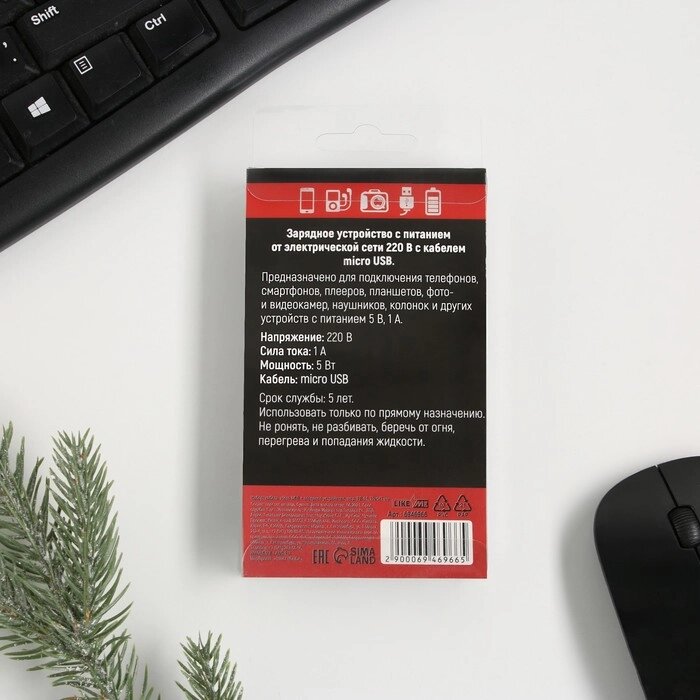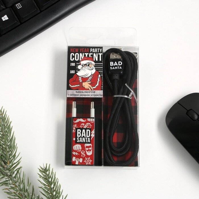 Набор кабель Micro USB + зарядное устройство , модель PB-01, "Bad santa", 7,3 х 14,7 см