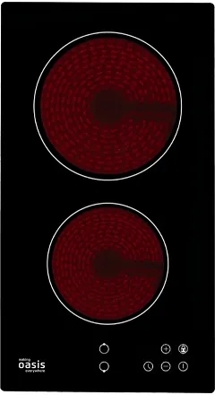 Электрическая варочная панель, тип конфорок Hi-Light, количество конфорок 2, материал поверхности стеклокерамика, управление: сенсорное управление, особенности: защита от детей, индикатор остаточного тепла, таймер , ширина встраивания 27.5 см, дизайн «Домино».