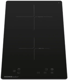 Электрическая варочная панель, тип конфорок индукционные, количество конфорок 2, материал поверхности стеклокерамика, управление: сенсорное управление, режим Booster, особенности: защита от детей, защитное отключение, индикатор остаточного тепла, таймер , ширина встраивания 26.8 см, дизайн «Домино».