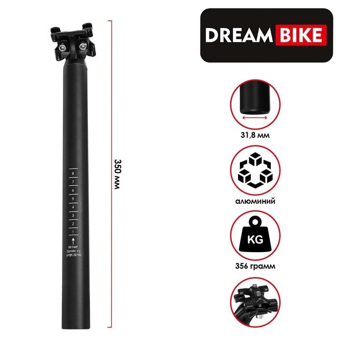 Штырь подседельный Dream Bike, алюминиевый, 31,8мм, 350 мм, цвет чёрный