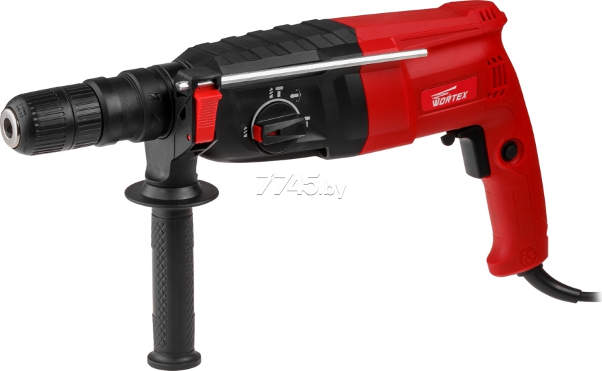 Перфоратор WORTEX RH 2829 (RH282901129) оснащен функцией регулировки угла оснастки. Высокая скорость при сверлении и высокая производительность при долблении осуществляется благодаря двигателю в 900 Вт и энергии удара 3,2Дж. Перфоратор имеет 3 вида работы: сверление, сверление с ударом, долбление. Быстрорегулируемая эргономичная рукоятка легко настраивается в любом нужном положении. Патрон SDS+. В набор входит 3 сверла: 8х150, 10х150, 12х150 мм и 2 зубила: пиковое 230 мм и плоское 20х230мм.