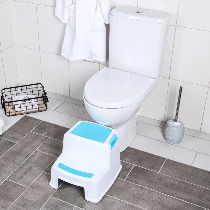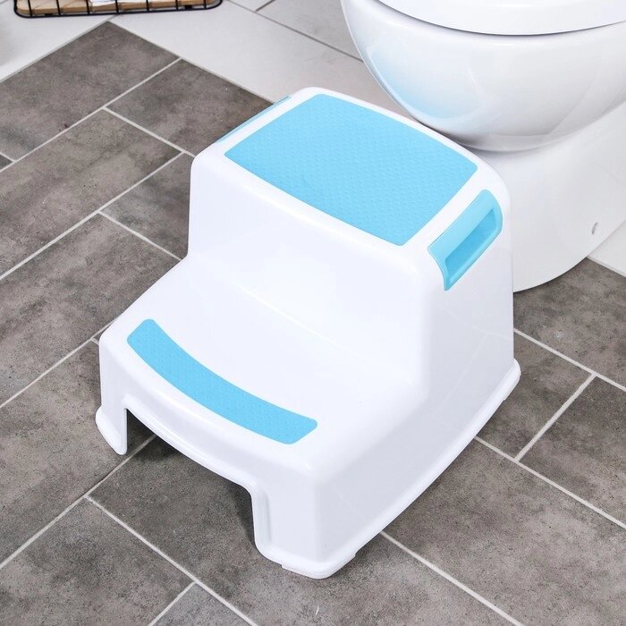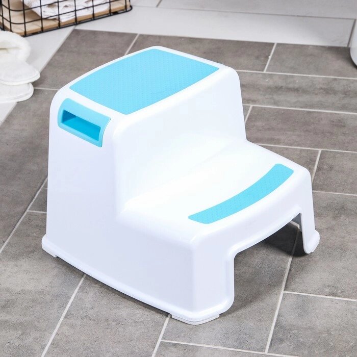 Подставка детская с прорезинеными ступеньками, цвет белый/голубой