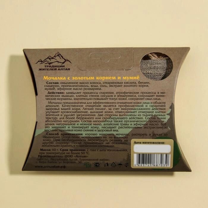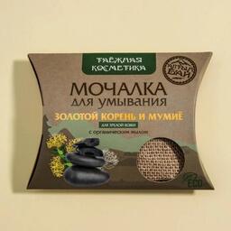 Мочалка для умывания «С золотым корнем и мумиё», льняная, с органическим мылом