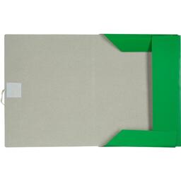 Папка изготовлена из мелованного картона плотностью 300 г/кв. м, в наборе 20 штук, 4 цвета (синий, красный, зеленый, желтый) по 5 штук каждого. Размеры изделия в развернутом виде 310×470 мм. Корешок 20 мм. Вместимость до 200 листов. Упакован в гофрокороб по 10 наборов.
