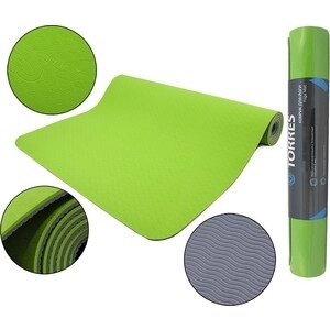 Коврик для йоги Torres Comfort4, TPE 4 мм, зелено-серый