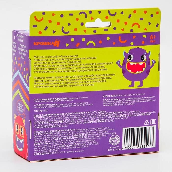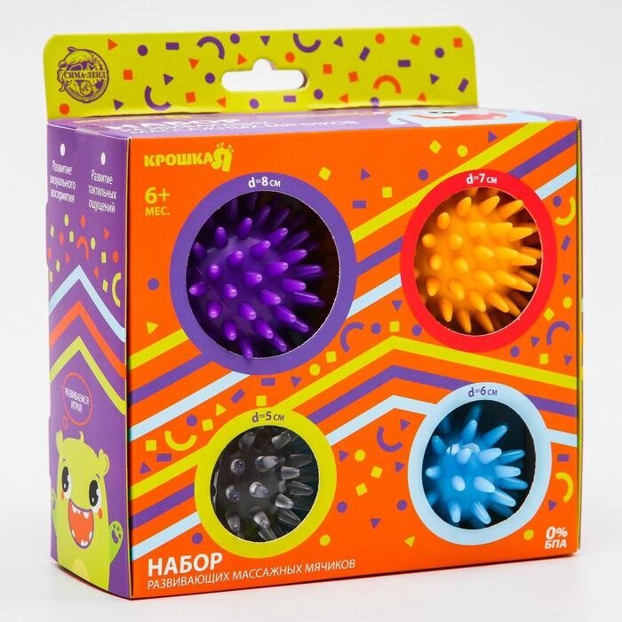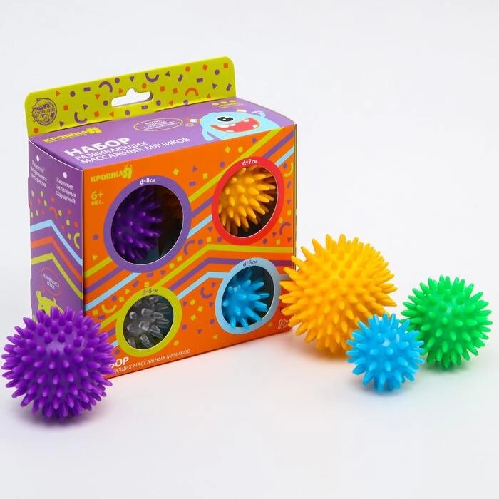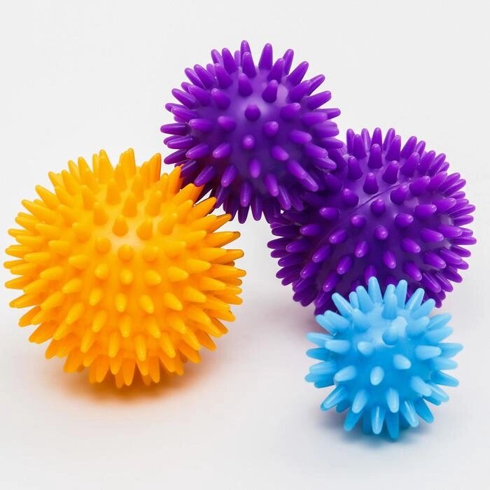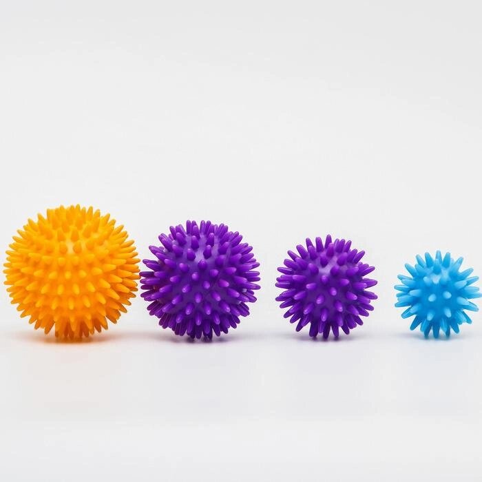Набор твёрдых развивающих массажных мячиков с шипами «Ёжики», 4 шт, d=5,6,7,8 см