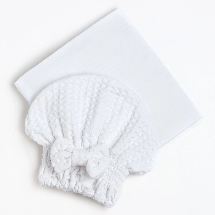 Набор для сауны Экономь и Я: полотенце-парео+шапочка, цв. белый, вафля, 100%хл, 200 г/м2