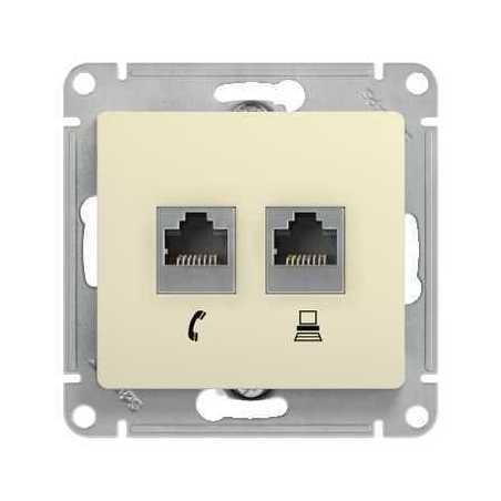 GLOSSA РОЗЕТКА двойная компьютерная RJ45+RJ45, кат.5E, механизм, БЕЖЕВЫЙ GSL000285KK Glossa